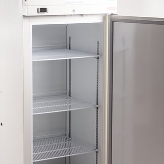 As temperature uniformity is very important and the ability of the refrigerator to recover after loading, Thermoline uses cabinets with aluminium finned evaporators. The aluminium-finned evaporators are not housed inside the refrigerated chamber, and ensuring uniform airflow over the fins is far easier. This allows for easier temperature uniformity through the refrigerated cabinet's working space. It should be noted that in terms of freezers, we are referring to the auto-defrost TUF models. The TF model freezers are for a specific purpose, and the refrigeration cooling is through the fixed shelves.