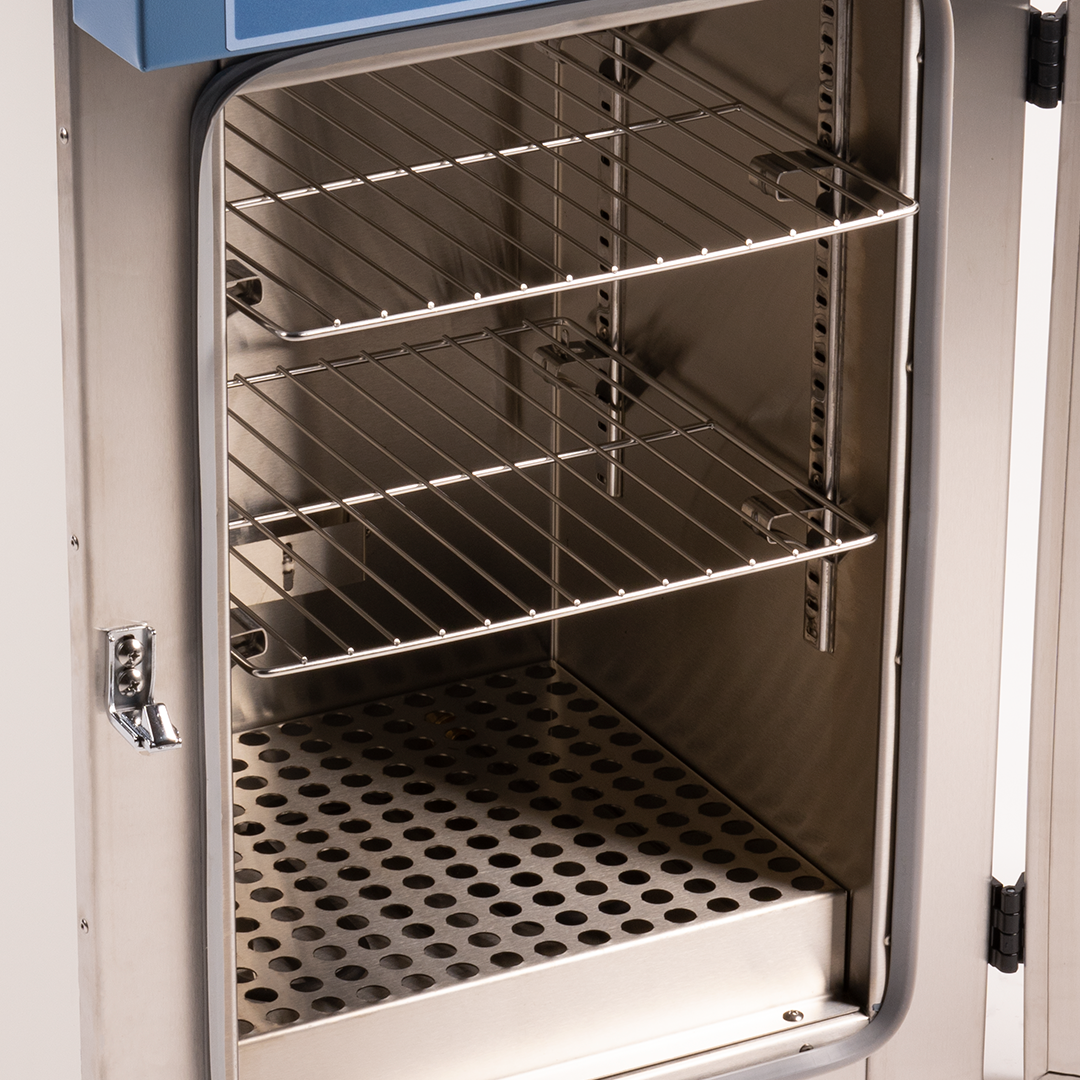 A laboratory oven is used for drying, heating, or sterilising materials and is typically designed to operate at higher temperatures than a laboratory incubator. A laboratory oven typically uses air convection to circulate hot air throughout the chamber, and can be set to a specific temperature or temperature range. Ovens generally control temperatures +80°C and up.